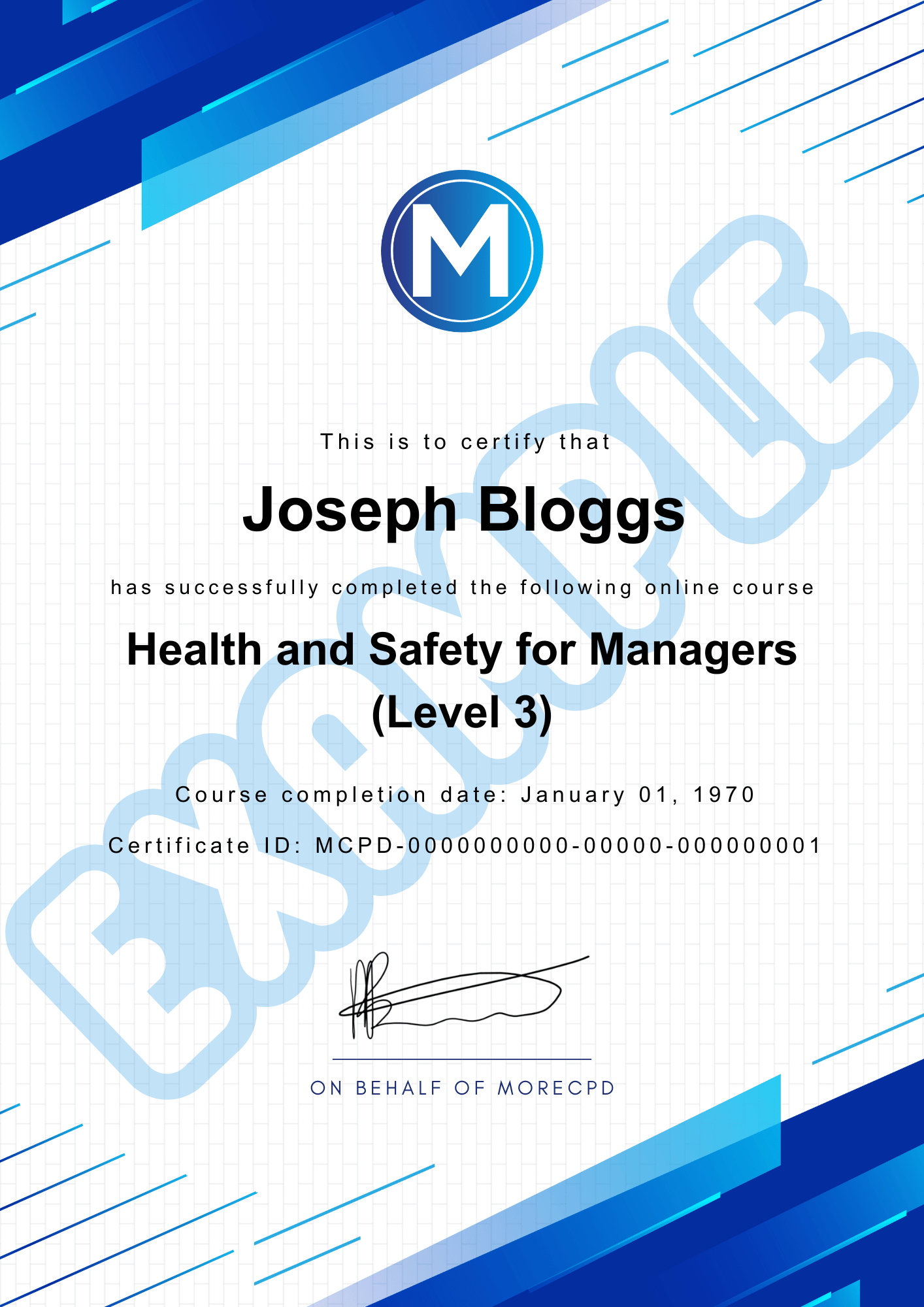 Once you have successfully completed your course and passed the final test you will have instant access to a downloadable PDF certificate. This will also be accessible from your user portal section any time you log in. Your certificate will have a unique ID which can be checked with us if needed.